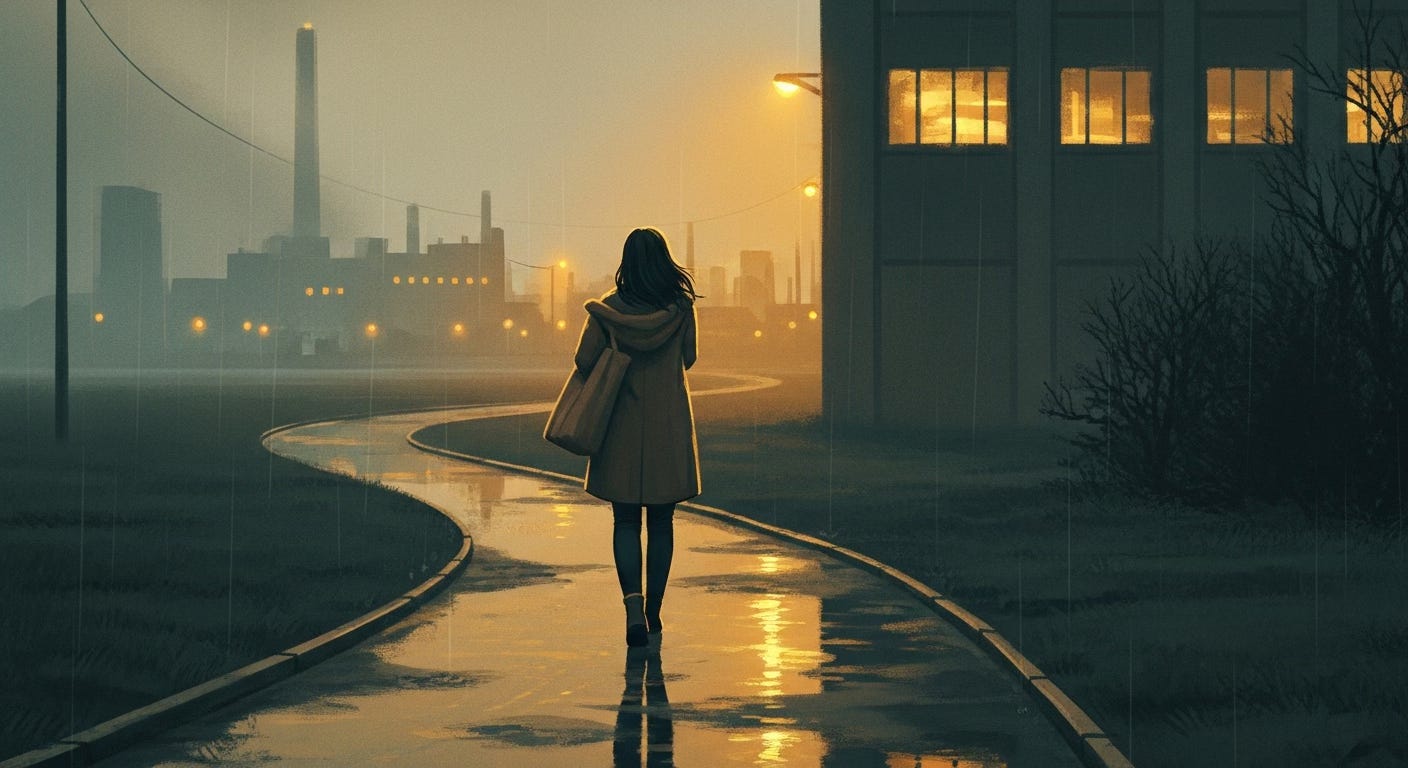 It unsettled me more than I let on. I had thought myself harmless in that space. I had not considered that harmless was not the same as neutral. My presence altered the moment, not the structure. The posters would still be there the next day. The men would still stop what they were doing and stare at her. I had crossed that factory floor countless times without noticing what it required of someone walking it alone — without calculating distance to an exit, without choosing a route that kept attention brief.